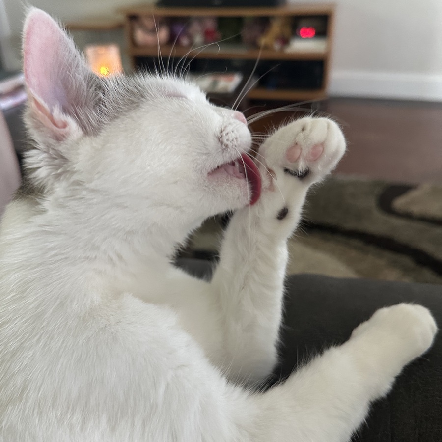 I see it in the way he makes sure I feel safe and supported, and I see it in how he responds to Sylvie’s trust. When she sprawls on her back, belly exposed and throat open to his touch, he longs to protect her and keep her safe. And if she lets out a plaintive meow, forget it. He has to be sure she is okay.